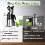 Cold press technology efficiently separates juice from pulp with minimal heat generation. The included containers let you collect juice and pulp separately—ideal for using pulp in other healthy recipes.