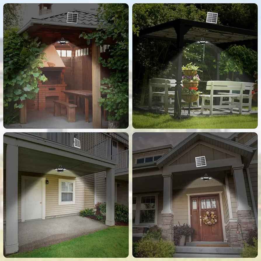 【Waterproof & Easy to Install】With IP65 waterproof rating, the ICOFRU solar pendant light can withstand in rain and other extreme weather conditions. Please use screws to hang the solar light indoor, gazebo or under the roof, the solar panel to face the sunlight. Only need about 10-15 minutes to install the light.