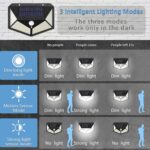 - 【3 Lighting Modes】Sensor mode:when the solar light outdoor detects motion at nigh,motion sensor turns the light on strong brightness for 20 seconds and off automatically. Dim Light Sensor Mode:the sensor solar light keeps light always On in Dim Light condition and it turns fully On when it detects the motion. After 30s, it will return to dim-light mode. Medium Light Mode:the solar motion sensor security Light always stays on in Medium Lighting until no electricity.